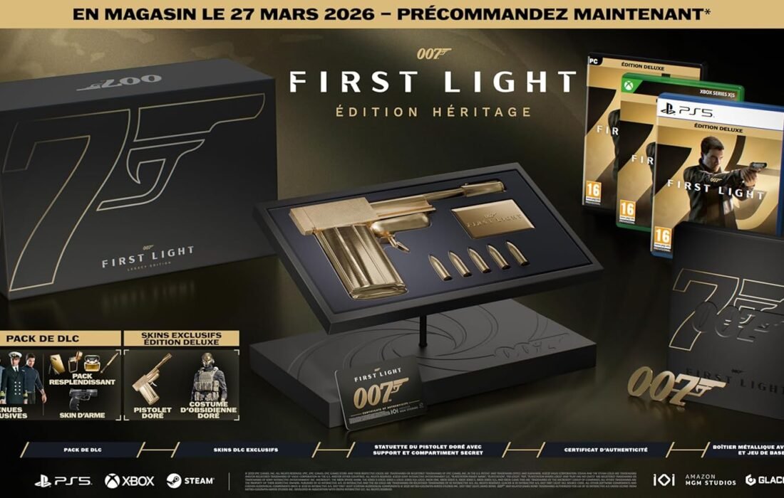Rewrite Pre-order 007 First Light Legacy Edition today and receive the following content: • Base Game • Deluxe Edition Contents • Golden Gun Statuette • Certificate of Authenticity • Metal Case With Magnet (Steelbook) • Golden Gun weapon skin • Golden Obsidian Costume Follow a smart, and sometimes reckless young James Bond during his training in the new program 00, and discover the untold and revisited story of the origins of the most famous secret agent. Following an act of bravery, James Bond, a young Navy member, is enlisted in the Double 0 program. But when a mission to neutralize a seditious spy ends in tragedy, he must join forces with his mentor Greenway to unveil a conspiracy threatening the very heart of power. BECOME 007 Discover an untold story of the origins of James Bond, and follow the tumultuous journey of this hot head, who has become MI6’s best agent. Embark on exotic missions, pilot iconic vehicles and immerse yourself in a movie-worthy adventure in pursuit of a seditious agent always one step ahead. SPY IS YOU Opt for discretion or fight. Bare-handed combat or guns, gadgets or infiltration, bluff under the nose of the enemy, the choice is yours. WELCOME TO MI6 Test your spy skills and replay your favorite missions with additional modifiers for even more fun!