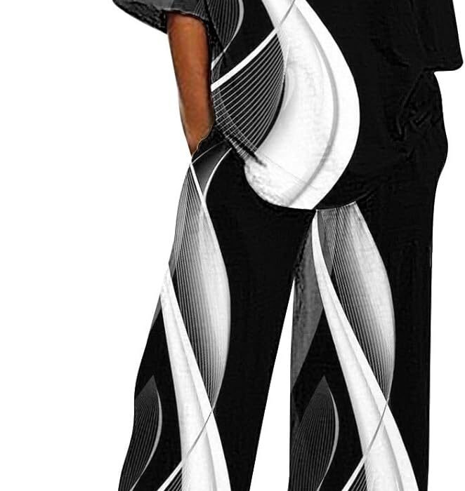 Generisch Women’s black trousers with black stripes fashion elastic drawstring trousers comfortable long trousers with straight legs pockets women’s trousers black white stripes