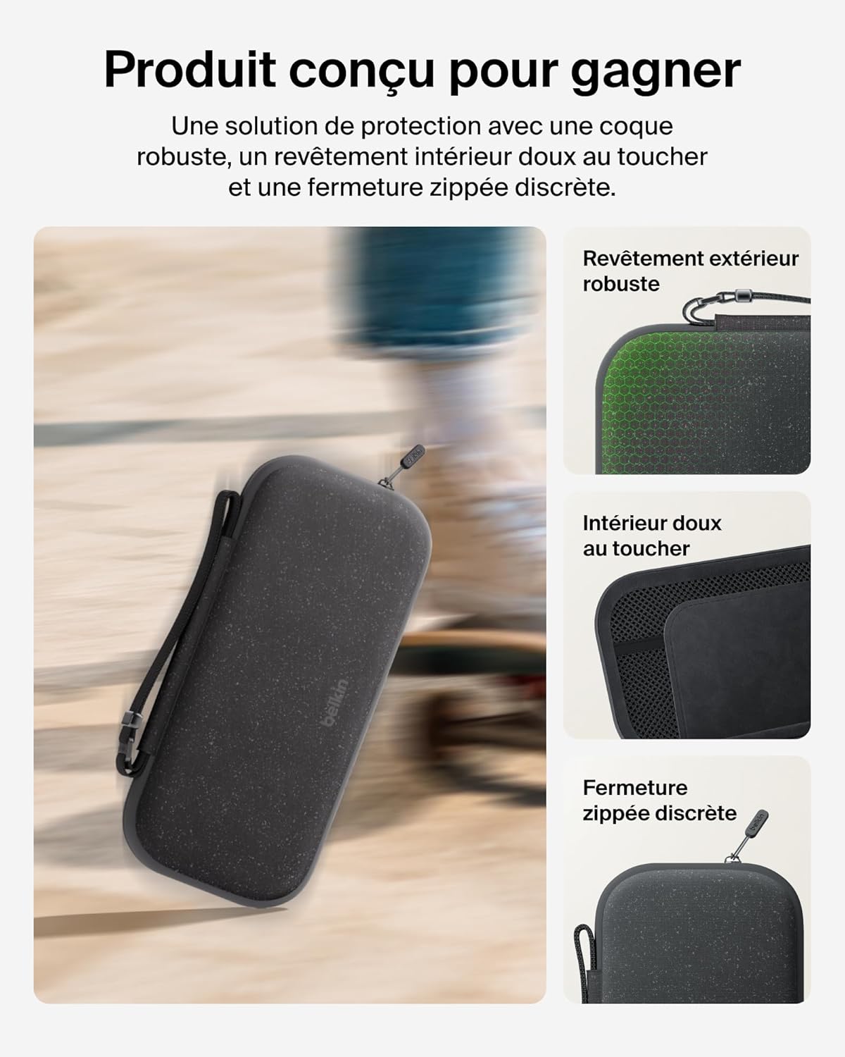 PRODUIT DURABLE SOUS GARANTIE : l’emballage de cette pochette de recharge durable Belkin Gaming pour Nintendo Switch 2 est dépourvu de matériau plastique. Pour une totale tranquillité d’esprit, ce produit est couvert par une garantie 2 ans. in French, in 200 words or less.
