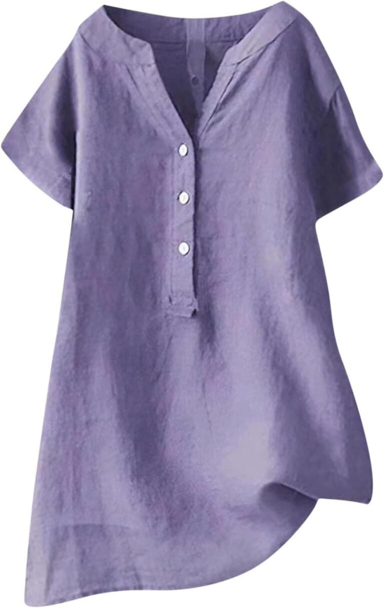 Season: All : Women Material: Cotton Decoration: None Sleeve Length: Short Sleeve Pattern Type: Solid Color Style: Fashion, Casual