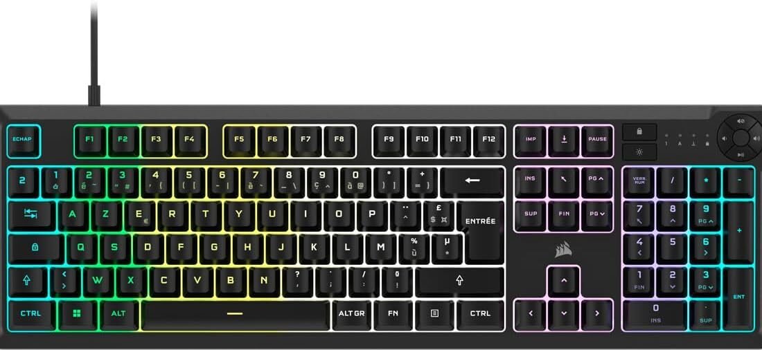 Rewrite The Corsair K55 Core Gaming Keyboard is the key to victory. Bombard colors during gaming sessions with fully customizable ten-zone RGB backlight, programmable in Corsair iCUE. Lighting worthy of your victory! With the quiet, responsive membrane switches, you can type, chat and play wherever you are. Its four media keys make it easy to adjust volume and playback for a perfectly smooth gaming experience, while its 300ml splash resistance protects you from unhappy gestures at the most intense moments. With the K55 CORE, you are equipped to chain victories.