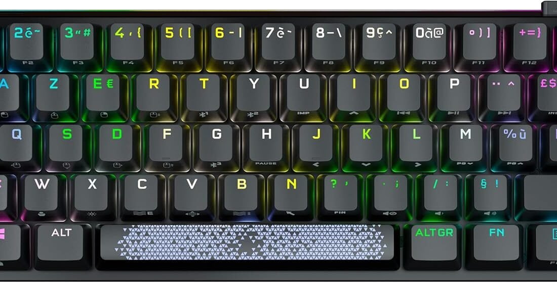 Rewrite Le clavier mécanique gaming 60 % RGB CORSAIR K70 PRO MINI WIRELESS est un atout à la fois en termes de performance et de personnalisation, se connectant via la technologie SLIPSTREAM WIRELESS ultrarapide inférieure à 1 ms, le Bluetooth ou l’USB. Les switchs de touche mécaniques CHERRY MX Red peuvent être échangés facilement avec des switchs compatibles MX pour une expérience de gaming et de saisie personnalisée. Les touches PBT DOUBLE-SHOT PRO durables et le châssis en aluminium sont illuminés par un rétroéclairage RGB par touche avec la technologie LightEdge 360°. La technologie d’hyper-traitement CORSAIR AXON transmet les frappes jusqu’à huit fois plus rapidement via le mode filaire USB. Avec une autonomie de batterie allant jusqu’à 200 heures, le K70 PRO MINI WIRELESS offre des performances personnalisées, sans câbles.