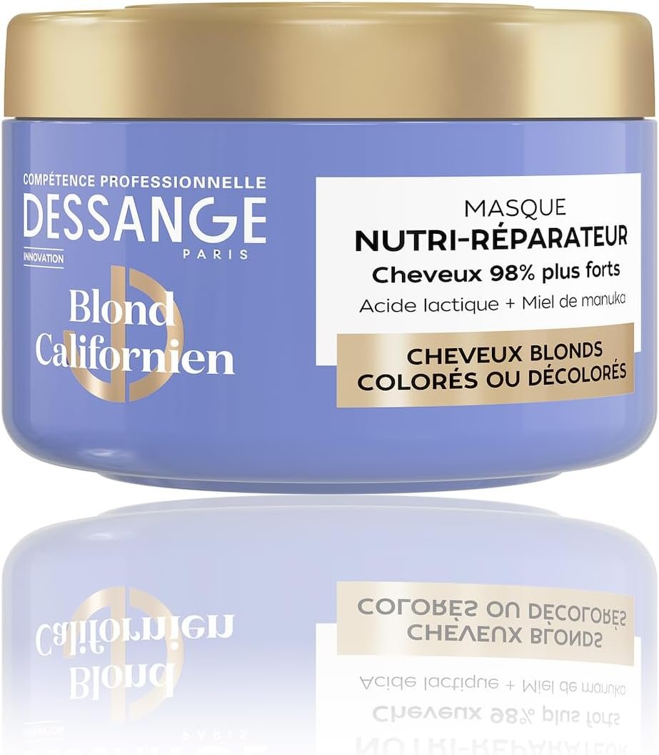 You are at:Home | Beauté et Parfum | DESSANGE – Californian Blonde Nutri-Repairing Hair Mask – Lactic Acid & Manuka Honey – Nourishes, Repairs & Protects From Breakage – Blonde, Colored, Bleached Hair – 280ml