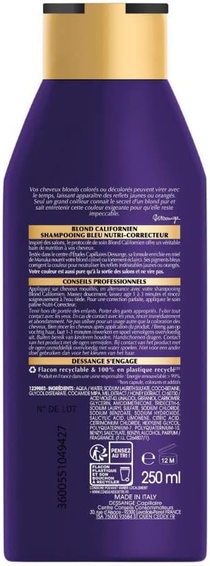 You are at:Home | Beauté et Parfum | Dessange – Californian Blue Blonde Shampoo 250 ml – Pack of 3