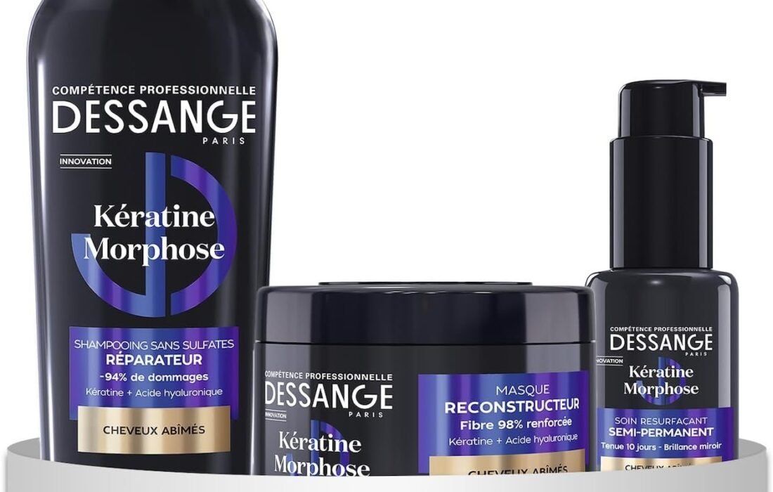 [Perplexity]Rewrite Since 1992, Dessange Compétence Professionnelle, an iconic French brand, has put salon expertise at the reach of all women by offering professional hair care that sublimates the hair, without going through the hairdresser. Thanks to innovative sensory formulas adapted to each type of hair, Dessange reveals the beauty of your hair day after day. External aggressions, such as the heat of devices, chemical treatments or even pollution weaken the hair fiber, making the hair dry, dull and brittle. The Kératine Morphose women’s repair set, consisting of shampoo, mask and leave-in treatment, has been specially designed to repair, strengthen and protect weakened hair. Enriched with vegetable keratin and hyaluronic acid, these treatments deeply rebuild the fibre and provide intense hydration for soft, supple and healthy hair. *Instrumental test after application of Keratin Morphose treatment. **Instrumental test after applying the Keratin Morphose shampoo, mask and treatment. Damage related to breakage. ***Instrumental test after applying the Keratin Morphose shampoo, mask and treatment.