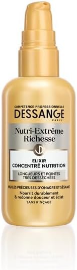 DESSANGE – Nutri-Extreme Rich Concentrated Elixir – Formula Enriched with Evening Primrose & Sesame Oils – Long-lasting nourishes, restores softness & radiance – For very dry ends – No Rinse – 100 ml
