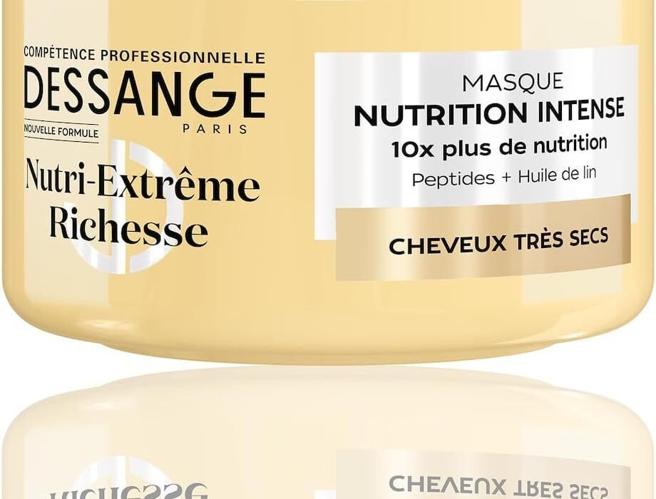 Depuis 1992, Dessange Compétence Professionnelle, marque française emblématique, met l’expertise en salon à la portée de toutes les femmes en proposant des soins capillaires professionnels qui subliment les cheveux, sans passer par le salon de coiffure. Grâce à des formules sensorielles innovantes et adaptées à chaque type de cheveux, Dessange révèle la beauté de vos cheveux jour après jour. Les agressions extérieures, comme les coiffages répétitifs, la pollution ou le manque d’hydratation, fragilisent la fibre capillaire et rendent les cheveux secs, ternes et cassants. Le masque capillaire nutrition intense Nutri-Extreme Richesse offre une action réparatrice et nourrissante en apportant aux cheveux l’hydratation dont ils ont besoin. Grâce à sa formule enrichie en huile de lin et en peptides, il imprègne généreusement la fibre capillaire pour la nourrir intensément tout en redonnant douceur et souplesse aux cheveux. Pour des résultats optimaux, complétez le protocole avec le reste de la gamme Nutri-Extreme Richesse. *Test instrumental après application du shampoing, du masque et du soin sans rinçage Nutri-Extreme Richesse.
