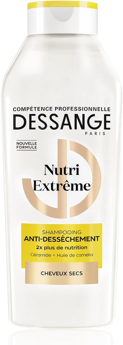 Since 1992, Dessange Compétence Professionnelle, an iconic French brand, puts salon expertise at the reach of all women by offering professional hair care that sublimates the hair, without going through the hair salon. Thanks to sensory formulas that are innovative and adapted to each type of hair, Dessange reveals the beauty of your hair day after day. External aggressions, such as repetitive styling, pollution or lack of hydration weaken the hair fiber and make the hair dry, dull and brittle. Nutri-Extreme Anti-Dryness Shampoo combats dryness by providing hair with the essential nutrition it needs. Enriched with ceramide and camellia oil care complex, it deeply nourishes, enhances the radiance of your hair and restores softness and suppleness. For optimal results, complete the protocol with the rest of the Nutri-Extreme range. *Instrumental test after application of Nutri-Extreme shampoo and detangling care.