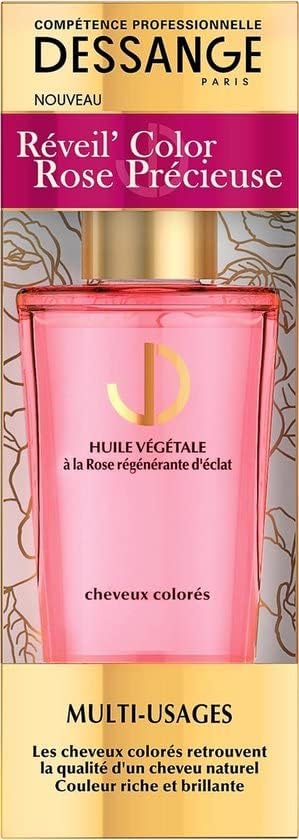Rewrite Coloring after coloring, the hair is attacked and denatured to the point of less well capturing color. Only a great hairdresser has the secret of a full of life: repair the fiber in depth to allow the color to express itself fully. Dessange Réveil’Color Precious Rose Vegetable Oil 50 ml is a regenerating rose of radiance for coloured hair, highly sensitized. Color has always been at the heart of Dessange design expertise. For its new color care ritual, Dessange has selected a legendary ingredient: rose. Queen of flowers known for its revitalizing properties, rose is particularly valuable for repairing and illuminating colored hair. For the first time, Dessange has concentrated all its power in its 100% vegetable oils: – Repairing: they coat the fibre and repair the lipid barrier. – Illuminating: they nourish the hair intensely and awaken contrasts. Colored hair regains the quality of a natural hair.