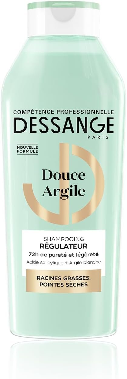 Rewrite Depuis 1992, Dessange Compétence Professionnelle, marque française iconique, met l’expertise des salons à la portée de toutes les femmes en proposant des soins capillaires professionnels qui subliment les cheveux, sans passer par le salon de coiffure. Grâce à des formules sensorielles, innovantes et adaptées à chaque type de cheveu, Dessange révèle la beauté de votre chevelure jour après jour. Le déséquilibre du cuir chevelu peut rendre vos racines grasses tandis que vos pointes restent sèches et fragiles. Le shampoing régulateur Douce Argile a été spécialement conçu pour purifier les racines tout en nourrissant les longueurs. Enrichi en acide salicylique et argile blanche, il élimine l’excès de sébum, rééquilibre le cuir chevelu et apporte douceur et légèreté aux pointes. Dès la première utilisation, vos cheveux sont frais, aérés et visiblement plus sains. Pour des résultats optimaux, complétez le protocole avec les produits capillaires Dessange. *Selon un test réalisé sur 60 consommateurs après 72 heures.