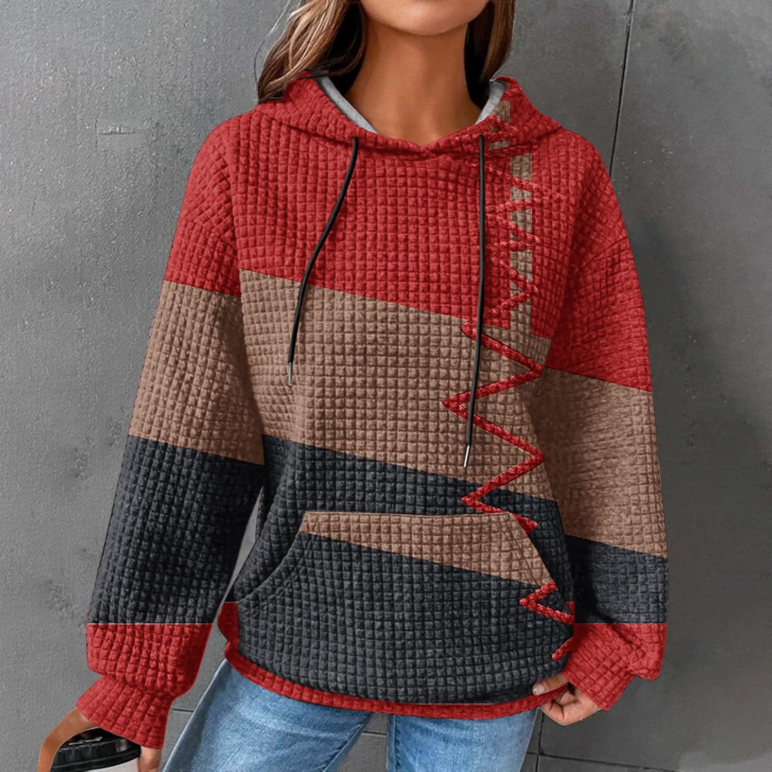 EMATOP women’s cotton hoodies casual long sleeve autumn winter warm vintage colourful print hoodie hoodie top fashion waffle with pockets clothing