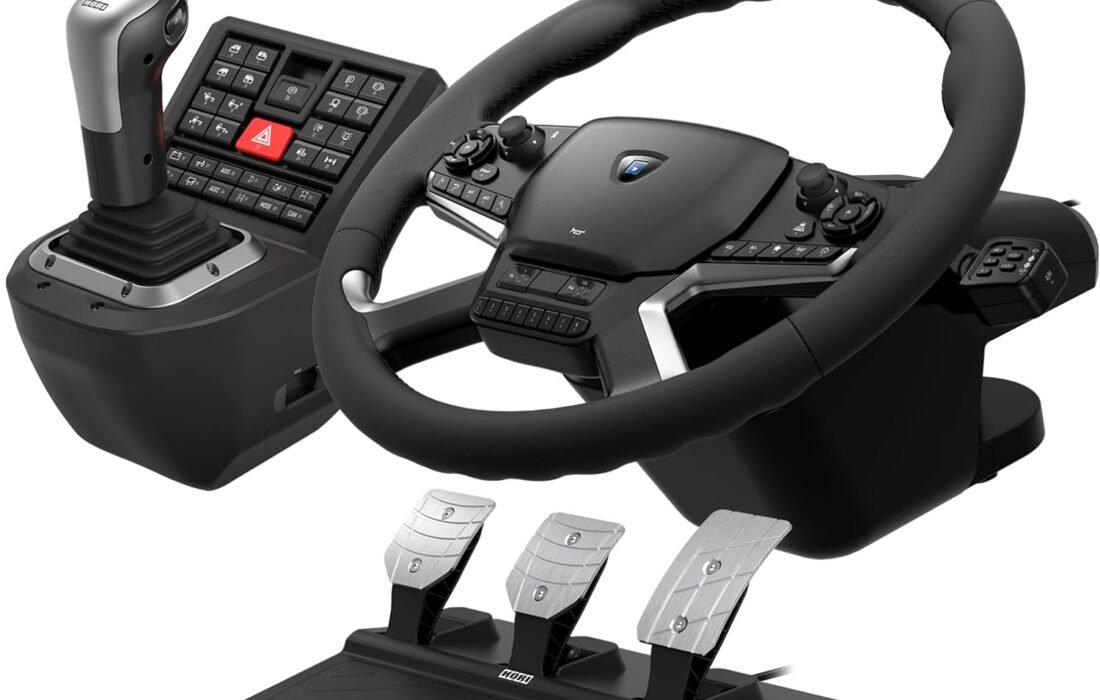 Rewrite Take control of your truck with the HORI Force Feedback Truck Control System. Featuring a full-size 40 cm steering wheel with 1800 degree rotation, this system faithfully reproduces the controls found in real trailers! Dual engine force feedback gives you an unparalleled realistic driving experience, making you feel the weight and responsiveness of the steering wheel on every turn and surface. Integrated controls include left and right levers for headlights and brakes, adding to the immersion in the driving experience. In addition, the robust metal bottom bracket, equipped with magnetic Hall sensors, ensures exceptional accuracy and durability. Experience your passion for the road with the Force Feedback Truck Control System HORI !