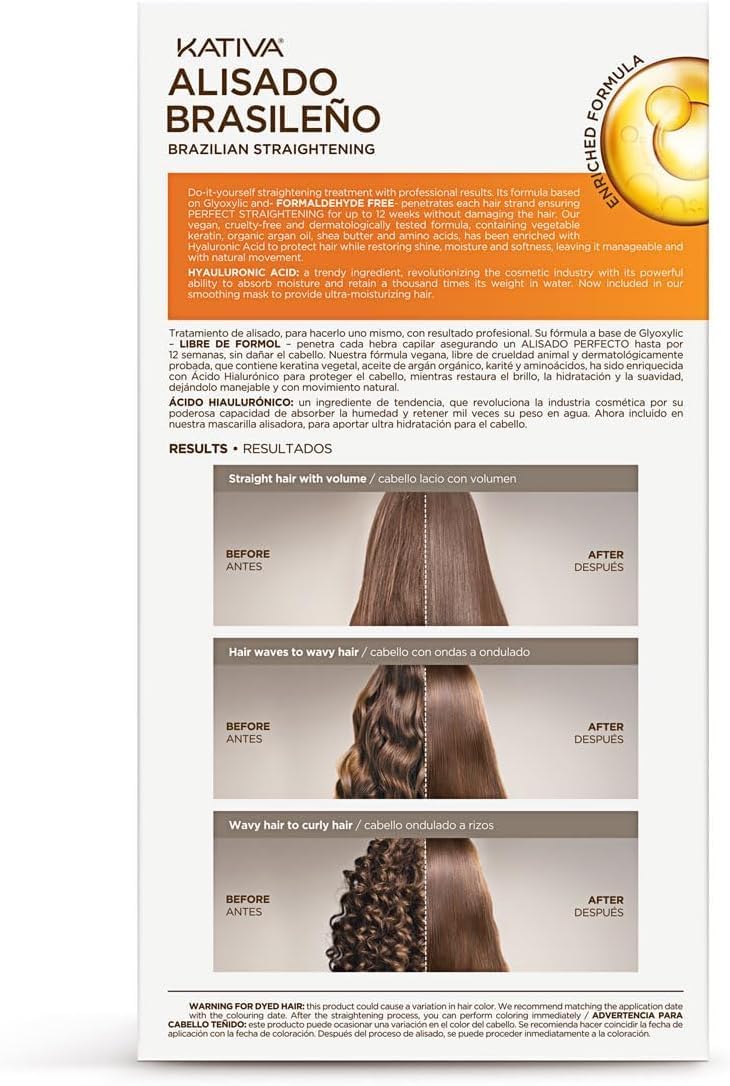 Brazilian Keratin Straightening Kit Kativa. in French, in 200 words or less.