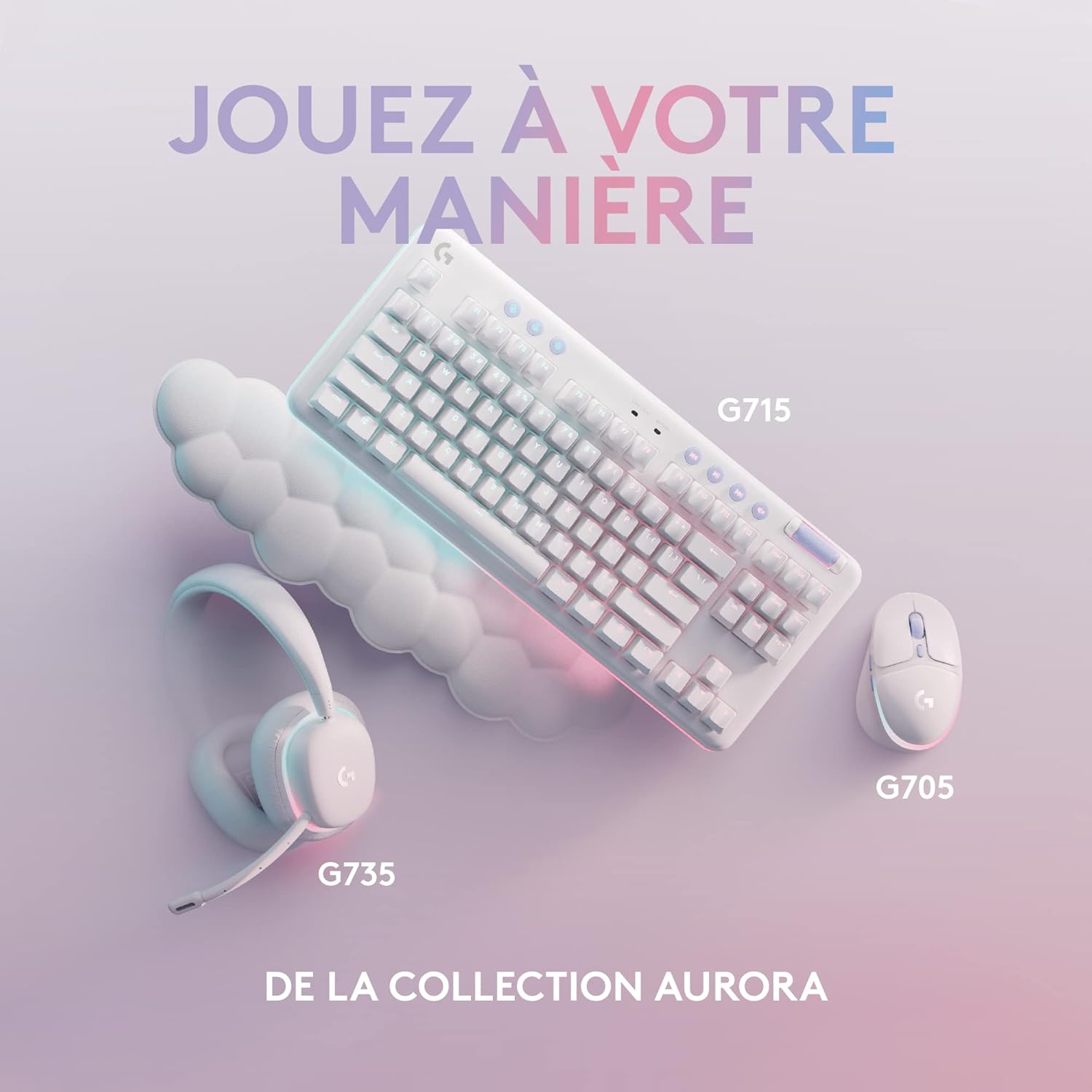 Rewrite Le clavier de jeu filaire G713 de la collection Aurora à vibrations faibles et à performance élevée vous permet de vous exprimer et de jouer à votre manière.