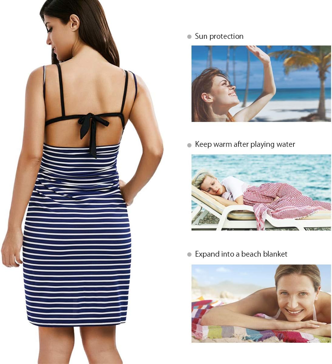 LumiSyne Cache-Maillots Bikini Femme Maillots De Bain Sarongs Robe De Caraco à Rayures De Mode Col en v Sexy Robe De Plage Jupes Wrap De Plage Grande Taille