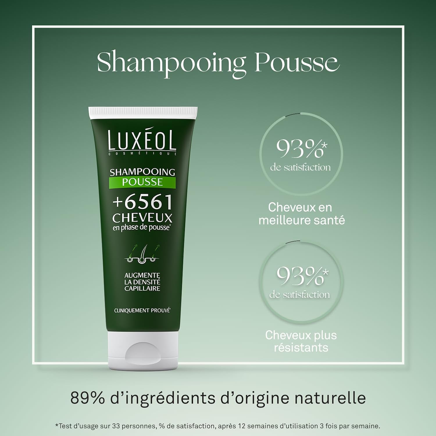MAKES HAIR STRONGER: In addition to promoting hair growth, Luxéol Shampoo Growth provides strength and resistance to your hair. Visibly more voluminous, shinier and less brittle, your hair is resplendent with health!