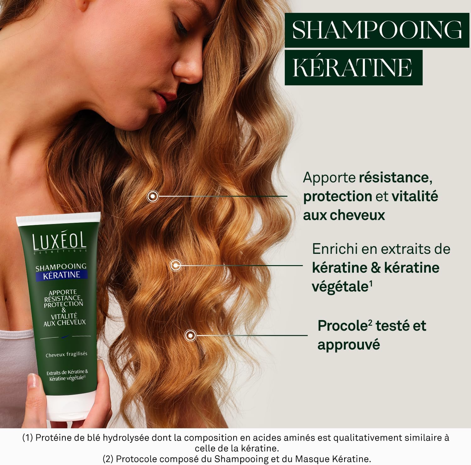 TESTED & APPROVED: Tested with 108 women for 28 days, the Keratin (2) Luxéol protocol restores vitality and natural radiance to hair, moisturizes it and makes it smoother. With its pleasant fragrance, it provides a pure moment of well-being.