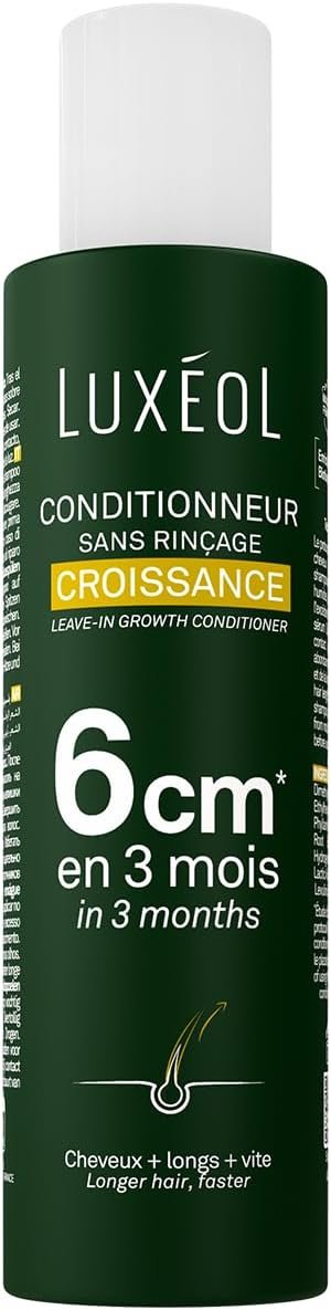 Rewrite Hair specialist, Luxéol offers a full range of food and cosmetic supplements to help you regain healthy hair. The Luxéol brand, expert in its core business, is recognized for the reliability of its products and their conclusive results. Made of quality ingredients, in accordance with current regulations, Luxéol hair products are meticulously studied, developed and manufactured in specialized factories to provide the best solutions to the problems of your hair. Do you want longer, faster hair? Discover the Croissance Leave-In Conditioner, a real treatment bath with a creamy texture. The Luxéol Growth Conditioner contains ingredients that work synergistically to support hair growth: – Castor oil that helps growth – Panthenol (provitamin B5) which helps in the repair of the hair fiber – Amla fruit extract that promotes hair growth – Arginine which contributes to hair growth and hydration – Vitamin B8 (Biotinin) (e) participating in the Hair Follicle Strengthening – Ginseng Root Extract known for its beneficial action on hair growth How can this conditioner help gain 6cm in 3 months*? Made in France, Luxéol Croissance Leave-In Conditioner is designed for people who want to accelerate their hair growth. Integrated into a complete care protocol with shampoo and serum from the same range, this conditioner promises faster hair growth, with clinically proven results. Dermatologically tested, the formulation of this leave-in conditioner is of natural origin, and free of silicones. Use as a conditioner after washing hair with Growth Shampoo, it provides a pleasant sensory experience. Like the other products in the range, its active ingredients work synergistically to stimulate hair growth, while providing nourishing and restorative care. CLINICALLY PROVEN ACTIONS: Growth: 6 cm in 3 months* Hair that grows 60% faster** Works in 100% of tested cases*** A PROTOCOL TESTED AND APPROVED: Accelerates growth: 93% satisfaction(1) Smoother, disciplined hair: 88% Satisfaction(1) More nourished hair: 88% satisfaction(1) Stronger hair: 90% satisfaction(1) Silky, light, softer hair: 90% satisfaction(1) Easy detangling hair: 88% satisfaction(1) Hair protected from breakage: 83% satisfaction(1) Repaired length: 86% of satisfaction(1) Hair of spectacular shine: 90% satisfaction(1) Healthy radiant hair: 88% satisfaction(1) Leaves a pleasant smell: 100% satisfaction(2) Creamy texture: 97% satisfaction(2) Gently scented hair: 93% satisfaction(2)*Clinical study against placebo, 87 women, 2.4 in length after 3 months of use of the Growth protocol versus 3.8 cm for placebo. **Clinical study against placebo, 87 women, % growth acceleration compared to placebo after 3 months of use of the growth protocol. ***Clinical study against placebo, 87 women, significant increase in hair growth in all volunteers compared to placebo, after 3 months of application of the growth protocol. ****Growth Protocol = Shampoo + Leave-In Conditioner + Growth Serum (1) Use test on 43 women, % satisfaction, after 3 months of use of the Growth Protocol (2) Usage test, 43 women, % satisfaction after application of the growth leave-in conditioner, 3 times a week, for 3 months. (3) Formula enriched with Castor Oil, Panthenol, Biotin, Arginine, Amla & Ginseng fruit extracts. (4) Innovation in the Luxéol range. Ingredient list: Aqua, Glycerin, Brassicamidopropyl Dimethylamine, Brassica Alcohol, Hydrogenated Ethylhexyl Olivate, Inulin, Ricinus Communis Seed Oil, Phyllanthus Emblica Fruit Extract, Panax Ginseng Root Extract, Arginine, Panthenol, Biotin Hydrogenated Olive Oil Unsaponifiables, Parfum, Lactic Acid, Propanedi ol, Xanthan Ge um, Maltodextrin, Levulinic Acid, Sodium Levulinate, Limonene, Linalool, Sodium Benzoate. Precautions for use: Avoid contact with eyes. In case of contact, rinse thoroughly with clean water. Keep away from heat and light.