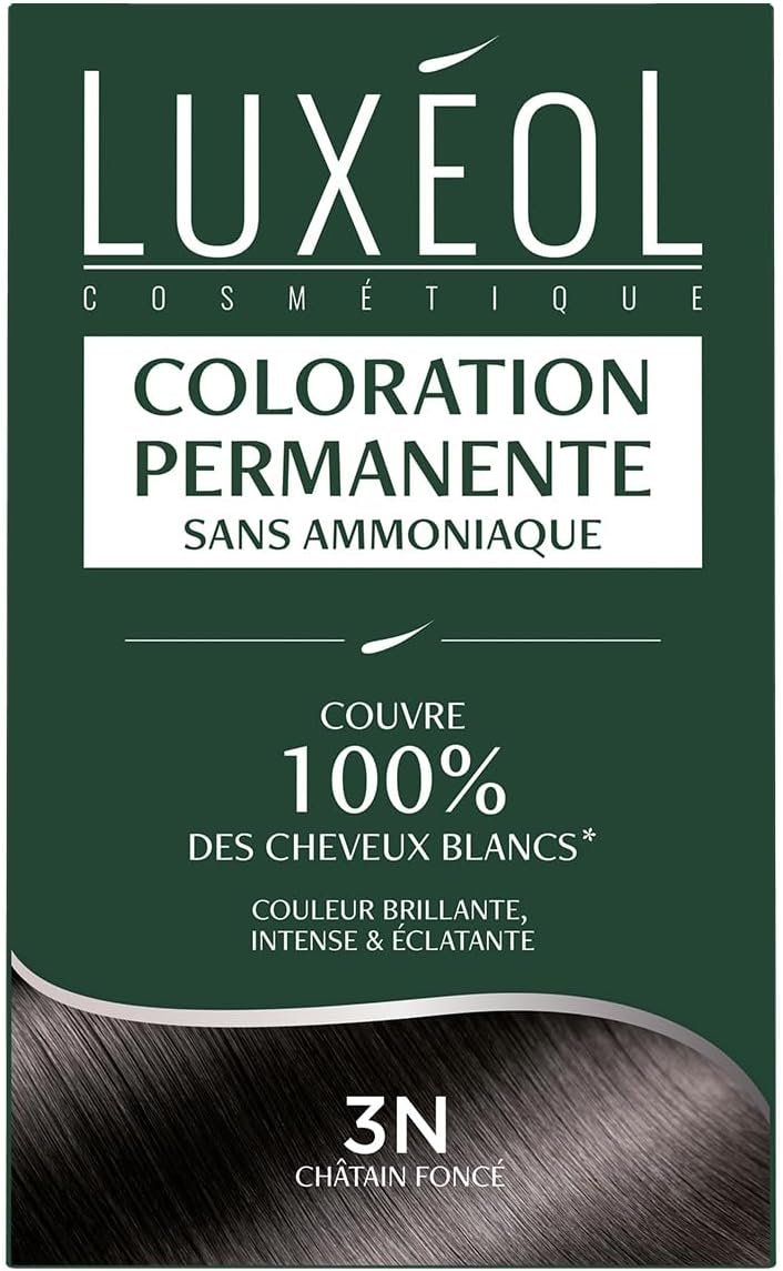 Rewrite Hair specialist, Luxéol offers a full range of food and cosmetic supplements to help you regain healthy hair. The Luxéol brand, expert in its core business, is recognized for the reliability of its products and their conclusive results. Composed of quality ingredients, in accordance with current regulations, Luxéol hair products are meticulously studied, developed and manufactured in specialized factories in order to provide the best solutions to the problems of your hair. Do you want to color your hair without attacking your scalp? Discover Luxéol permanent hair dye. Made in France and dermatologically tested, Luxéol Dark Brown (3N) hair colour offers a radiant and intense colour to the hair. Respecting the scalp, it is formulated without ammonia. The accompanying after-colour shampoo is formulated with 94% natural ingredients, free of silicones or sulphated surfactants. You are looking for an easy-to-apply colour that covers 100% of white hair (1) and lasts over time (2). Luxéol permanent hair colour covers 100% of white hair (1) and lasts up to 28 days. It is accompanied by an after-colour shampoo that is a real after coloring treatment to nourish the hair and reveal its color. Thanks to its quick and easy mixing and practical applicator bottle, it is easy to use and takes only 35 minutes to apply for effective colouring at home. TESTED AND APPROVED COLORING: (% satisfaction)Covers 100% grey hair: 87% satisfaction(3)Soft and nourished hair: 91% satisfaction(3)Scalp friendly: 91% satisfaction(3)Soft hair: 96% satisfaction(3)Results with reflections Natural: 96 % satisfaction(3)Radiant beauty hair: 87% satisfaction(3)Intense color: 96% satisfaction(3)Easy to apply: 100% satisfaction(3)Bright and vibrant color: 83% satisfaction(3)Easy and quick blending: 100% satisfaction(3)After color shampoo has a pleasant smell: 96 % satisfaction(3)Aftercolour shampoo offers true care after coloring: 91% satisfaction(3)After color shampoo nourishes hair: 91% satisfaction(3)(1) Consumer test, 23 people, after immediate application. (2) Long lasting = 28 days. (3) Consumer test, 23 people, satisfaction percentage after immediate application. INGREDIENT LIST: Colour cream: aqua, cetearyl alcohol, propylene glycol, ceteareth-25, ethanolamine, ceteth-2, peg-2 rapeseedamine, peg-4 rapeseedamide, toluene-2,5-diamine sulfoxiate, Idied corn oil, Simmed. mondsia chinensis seed oil, cocos nucifera oil, ziziphus joazeiro bark extract, gardenia taitensis flower, 4-chlororesorcinol, sodium sulfite, propanediol, perfume, polyquaternium-22, ascorbic acid, m-aminophenol, sodium hydrosulfite, tetrasodium edta, 2-aminoethyl-4-hydroxyhydroxy; aminoanisole sulfate, n,n-bis(2-hydroxyethyl)-p-phenylenediamine sulfate, 4-amino-2-hydroxytoluene, octadecyl di-t-butyl-4-hydroxyhydrocinnamate, acetic acid, phenyl methyl pyrazolone, tocopherol, citric acid. Revealing milk: Aqua, Hydrogen Peroxide, Cetearyl Alcohol, Ceteareth-33, Phosphoric Acid, Oxyquinoline Sulfate. Aftercolour shampoo: Aqua, Coco-Glucoside, Cocamidopropyl Betaine, Sodium Methyl Cocoyl Taurate, Sodium Myristoyl Sarcosinate, Citric Acid, Acetum, Parfum, Sodium Chloride, Polyquaternium-6, Polyquaternium-22, Sodium Phytate, Sodium Bisulfite, Sodium Benzoate, Potassium Sorbate. Instructions for use: Put on the gloves and a towel over your shoulders to protect your clothes from any possible projection.Open the bottle of the Revealing Milk applicator. Pierce the tube of Coloring Cream with its cap. Pour all of its contents into the applicator bottle. Fill the applicator bottle and shake until a homogeneous mixture is obtained. Immediately break the applicator tip to avoid product bursting or damaging splashes. Proceed directly to dry hair. Apply the mixture at the root by separating part by part of the hair using the applicator tip. Then distribute the remaining product over the entire hair, kneading thoroughly. Laying time 35 minutes. At the end of the exposure time, emulsify with a little warm water and rinse thoroughly with warm water until the water is clear. Proceed with the After Color Shampoo. Apply to wet hair. Massage gently while lathering. Rinse thoroughlyPrecautions for use: BEFORE USE, READ AND FOLLOW THE INSTRUCTION.Hair dye cream: Hair dyes can cause severe allergic reactions. Read the package leaflet and follow the instructions. This product is not intended for use on people under the age of sixteen. Black temporary henna tattoos can increase the risk of allergy. Do not color your hair if: • you have a rash on your face or if your scalp is sensitive, irritated or damaged, • you have experienced a reaction after coloring your hair• you have had a past reaction to a temporary black henna tattoo.Contains Diaminobenzenes and Phenylenediamines (toluenediam ines).Do not use to dye eyelashes and eyebrows. Avoid contact with eyes.Rinse immediately if the product comes into contact with them. Rinse your hair well after application. Wear adequate gloves.Do an allergy test 48 hours before each staining (see the enclosed leaflet), even if you have previously used coloring products. If there is any reaction or doubt, consult a doctor before using any hair colour product. Keep out of reach of children. Revealing milk: Contains hydrogen peroxide. Wear appropriate gloves. Avoid contact with eyes and skin. Rinse eyes immediately if product comes into contact with them and consult a doctor. Keep out of reach of children. Do not ingest. Do not orient the bottle towards the face when opening. Discard the mixture after use. Aftercolour shampoo: Avoid contact with eyes. In case of contact, rinse thoroughly with clean water. Capacity: Colouring cream: 60 mlDeveloper milk: 60 mlAftercolour shampoo: 12 ml