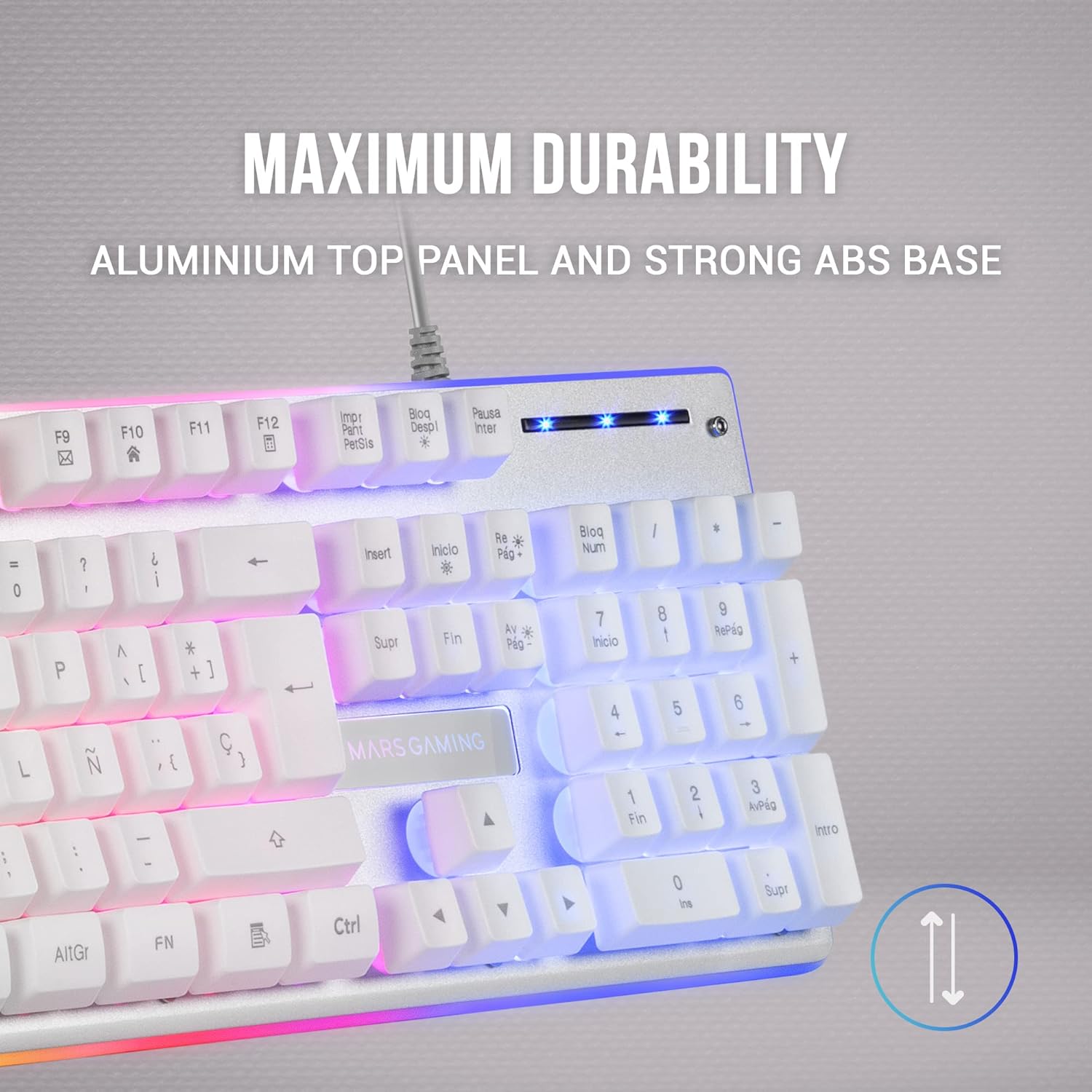 Rewrite The MK220W gaming keyboard offers premium features and a stunning look at your fingertips. Equipped with H-MECH hybrid touch technology and anti-ghosting system, FRGB Rainbow lighting on keys and peripherals with Halo effect, and finished with aluminum top panel and reinforced ABS base, this professional keyboard becomes your best ally.