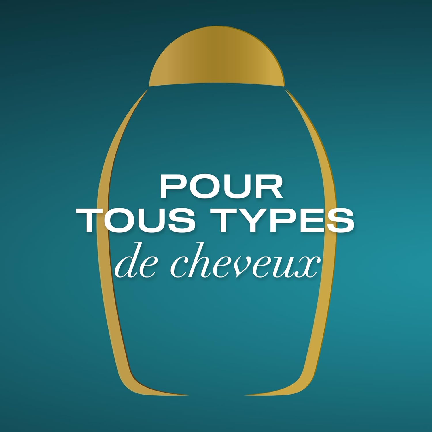 All hair types: This versatile formula is suitable for all hair types, giving everyone the opportunity to enjoy smooth, shiny and strengthened hair, leaving hair revitalized and full of vitality. in French, in 200 words or less.