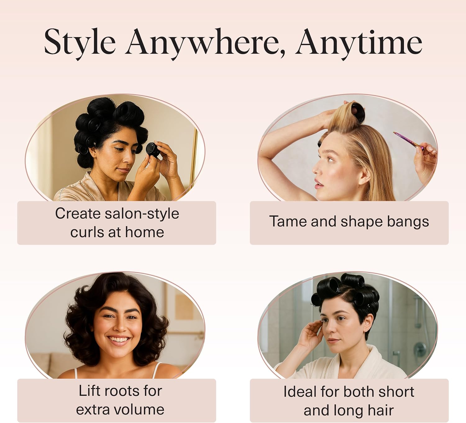 Facile à utiliser : insérez simplement les rouleaux sur cheveux presque secs, chauffez avec un sèche-cheveux pour réchauffer les rouleaux et laisser refroidir avant de les enlever. Le matériau auto-agrippant sur chaque rouleau crée une forte tenue tout en évitant de tirer et d’endommager vos brins.