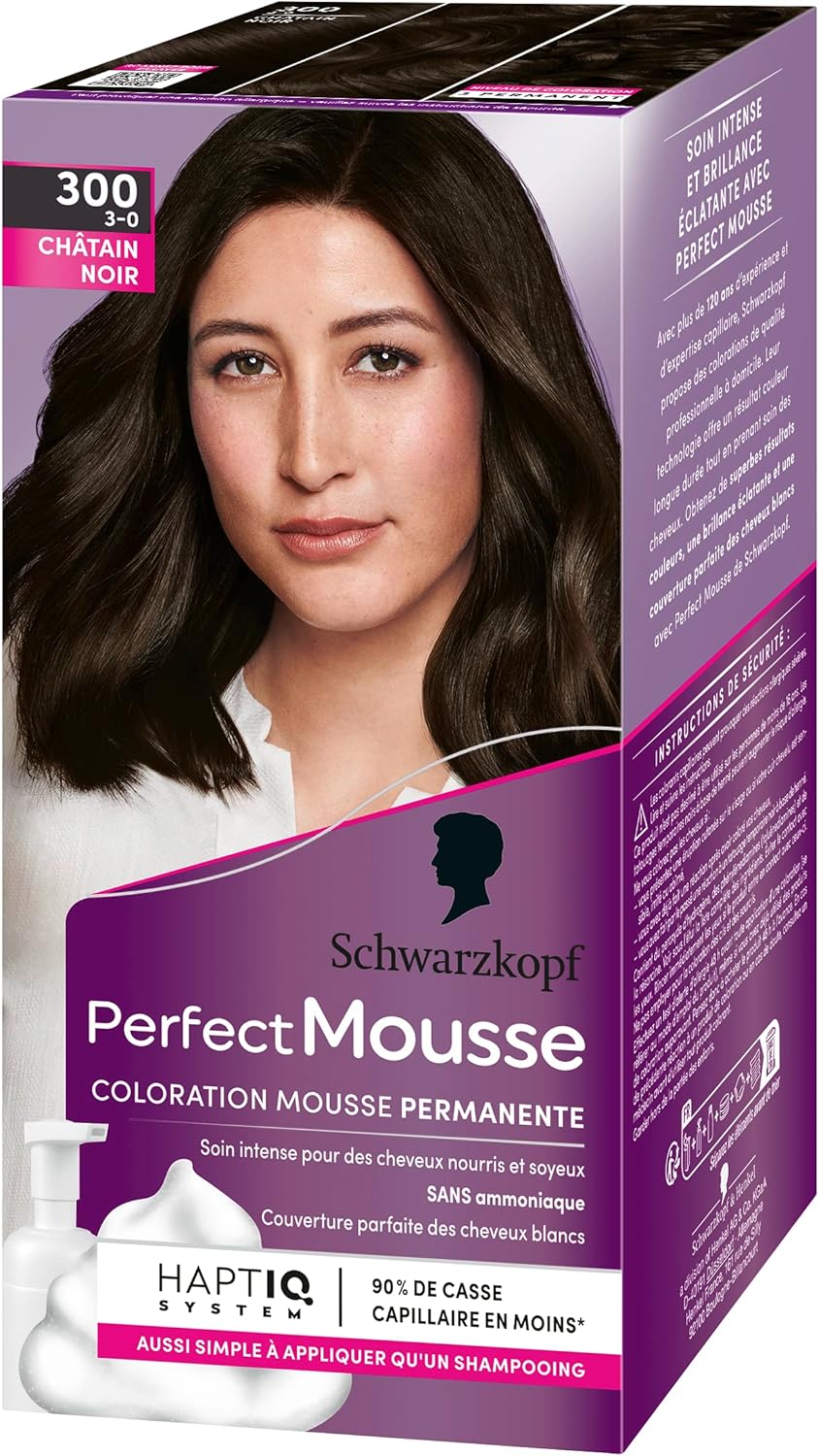 Schwarzkopf – Perfect Mousse – Hair Color – Permanent Mousse without Ammonia – Care Mask 96% natural ingredients – Black Brown 300, 0.5 ml (Pack of 1)