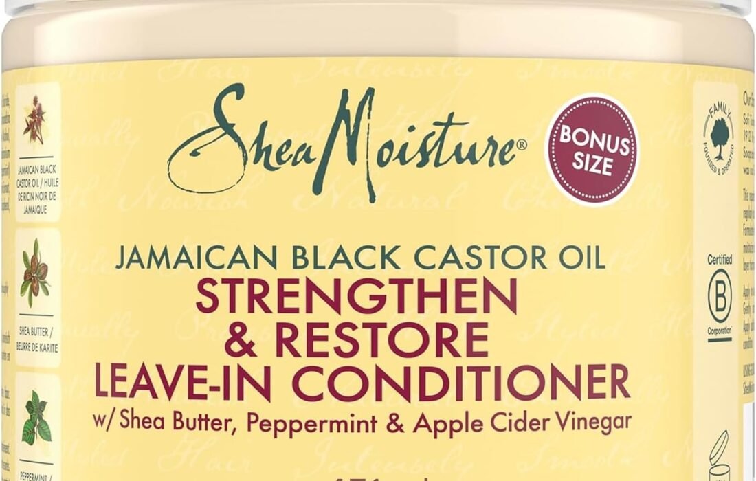 Shea Moisture Jamaican Black Castor Oil Leave-In Conditioner repairs, softens and detangles hair while controlling frizz