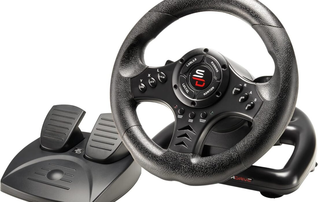 Rewrite Steering wheel compatible Xbox Series X/S, Nintendo Switch, PS4, Xbox One and PC. Double vibration motor. Crankset with acceleration and brake pedals. Gear shift paddles +/-. Fully replaces the controller: navigation through the menus via the D-pad and buttons on the steering wheel. 180° rotation angle. Sensitivity adjustment (3 levels of sensitivity). Large bottom bracket with footrest system and non-slip pads for optimal stability. Suction cup attachment system. e plug directly onto the controller. Reprogrammable buttons to suit all types of games. 100% compatible with all racing games (Gran Turismo Sport, Forza Motor Sport 7, Project Cars 2, F1 2020, Need for Speed, Dirt, WRC, Grid, V Rally 4, Gear Club 2 and even GTA V etc.).