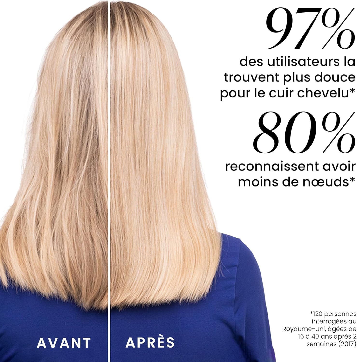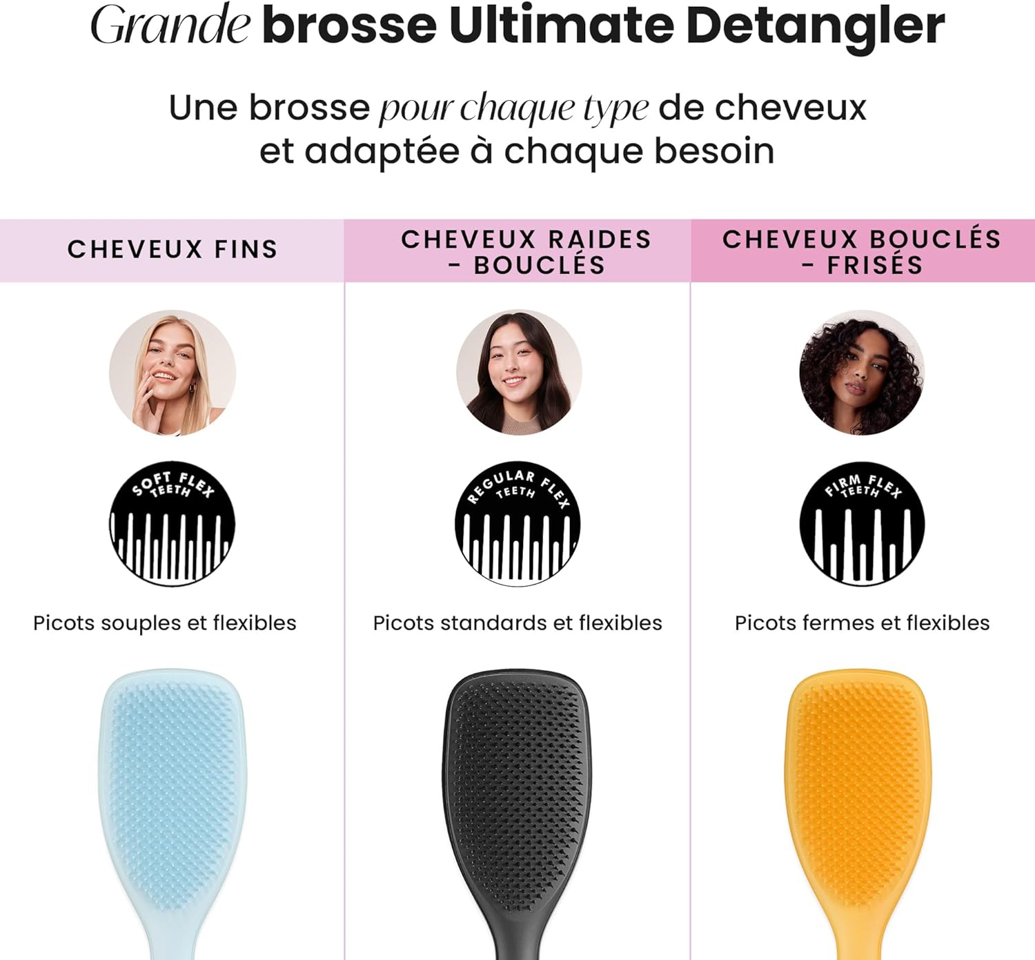 Founded in 2007, Tangle Teezer revolutionized hair care with its innovative detangling brushes. Loved by professionals and admired around the world, we combine heritage, expertise and cutting-edge design for effortless detangling, without damaging hair. At Tangle Teezer, we know that perfect hair is not limited to appearance, it gives you a sense of invincibility. Our detangling and styling products do more than detangle; they make it easy to tackle the knots of life. The Tangle Teezer Ultimate Detangler Large Detangler Hair Brush is suitable for long, thick, straight, wavy and curly hair, and can be used on wet and dry hair. With its larger design and innovative 325 double-tiered bristle technology, this hairbrush glides effortlessly through the most stubborn knots, on wet or dry hair, minimizing breakage for smooth, shiny hair. Its innovative and flexible bristles gently detangle knots without damaging the hair, making it ideal for fragile, dry or wet hair and even hair extensions and wigs. The health of the hair first passes through the scalp. Soft nubs stimulate blood circulation and hair growth while minimizing scalp irritation, making it perfect for sensitive skin. Our expertly designed brushes will make the perfect gift, whether it’s for a birthday, as a Christmas gift or for yourself. Cleaning your Tangle Teezer brush is paramount to keep your hair healthy and shiny. To clean your brush, remove the hair and wash it with soapy water. Then let your brush air dry with the bristles facing up. We recommend using an old toothbrush to gently remove any product buildup.