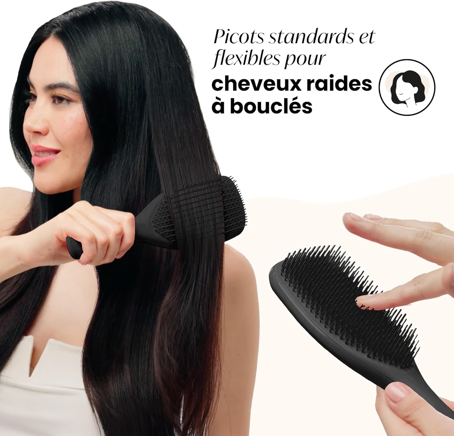 DETANGLE BRUSH – Our two-level flexible bristle technology allows tangling out tangles easily without breaking or damaging hair, perfect for delicate hair, after showering and on dry hair, even on extensions and wigs