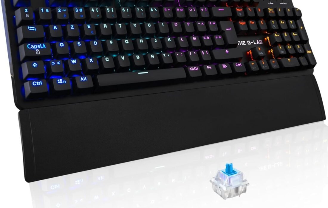 The G-LAB Keyz Carbon E Ultra Precise Mechanical Gaming Keyboard AZERTY Blue Switches – 16 Backlight Effects – Comfortable Magnetic Wrist Rest – Compatible with PC PS4 PS5 Xbox One / Xbox One X