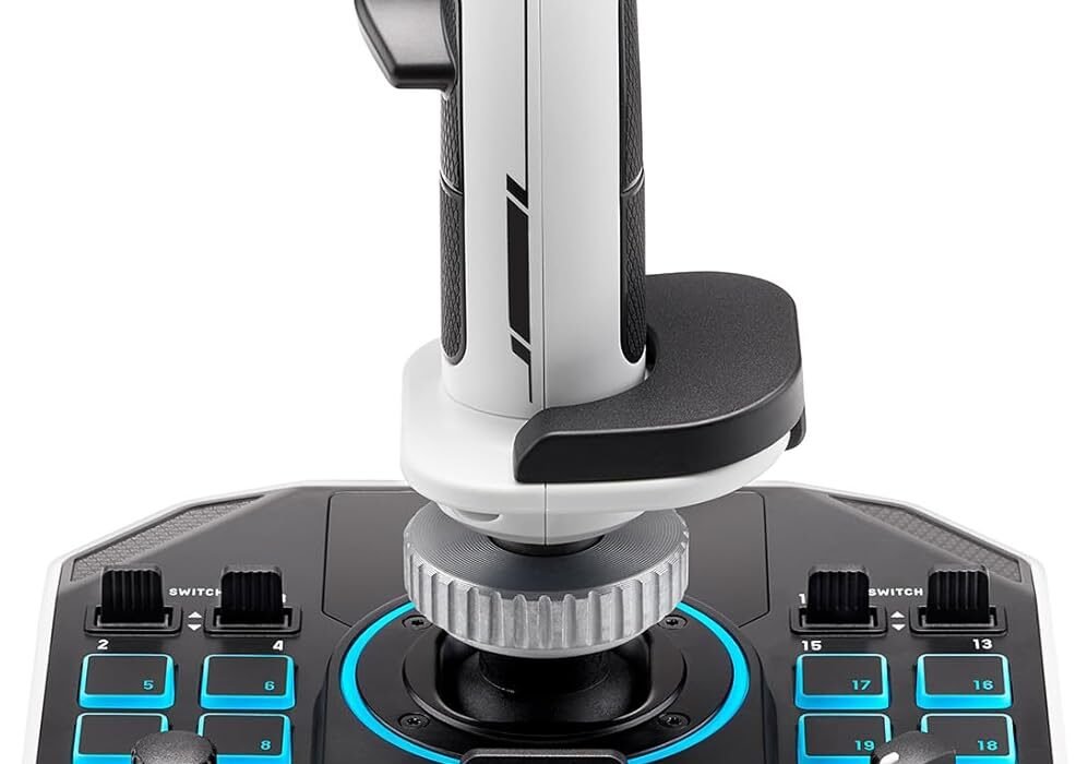 IDEAL JOYSTICK TO CONQUER THE STARS: 1 ambidextrous removable handle and base including a central throttle for a total of 44 action buttons.