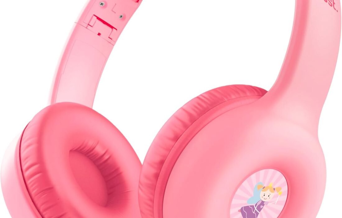 Trust Nouna Casque Filaire Audio pour Enfant 4-10 Ans avec Limite de Volume (85dB), Ecouteurs Filaire Pliable avec Micro et Autocollants, Connexion 3.5mm, Casque pour Switch, Tablette, Musique, Rose
