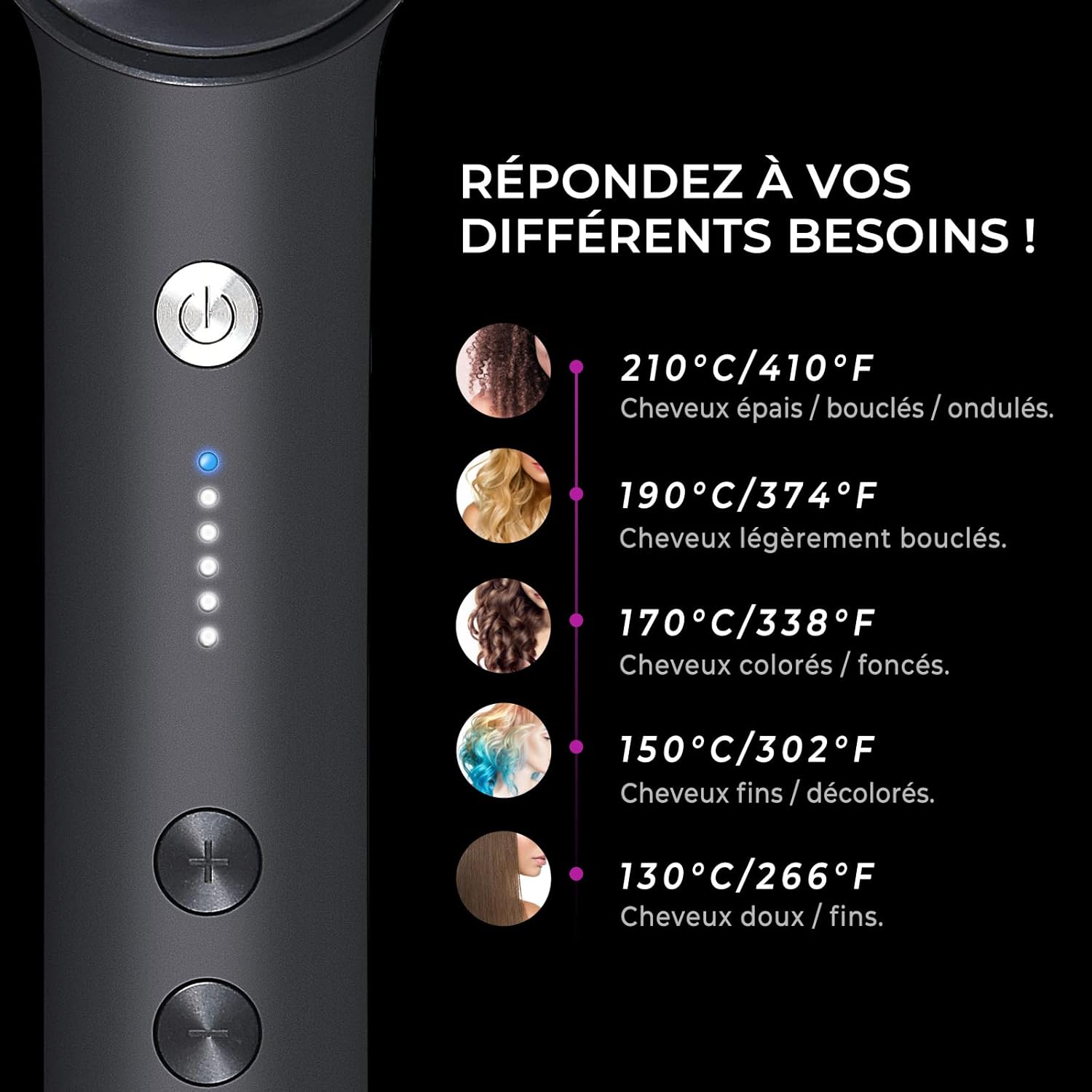 [Burn Protection]: The TYMO RING Hair Straightener features unique 3D brush teeth that evenly distribute heat, reducing thermal damage by 50% and keeping your hair frizz-free. The anti-scalding cover ensures that the users’ scalp and fingers are protected from accidental burns, allowing you to smooth your hair with peace of mind, without fear of getting burned, making the straightening process safer and more comfortable. in French, in 200 words or less.