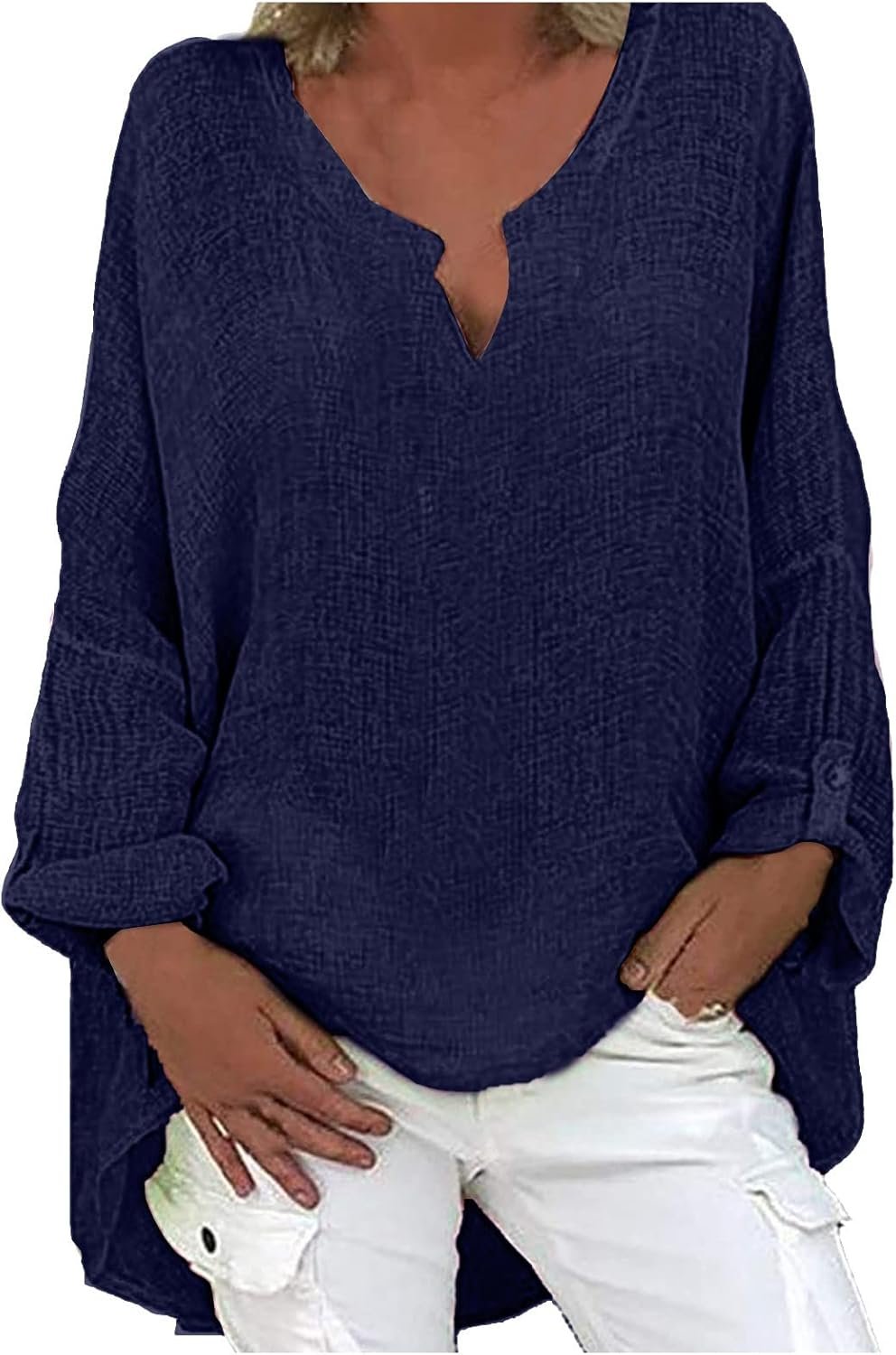 You are at:Home | Fashion | Women’s Cotton Linen Summer Chic T-Shirt Long Sleeve Oversized Linen Blouse Tunic Casual V-Neck Solid Color Tops Sexy Fashion Loose Breathable Shirt Tops