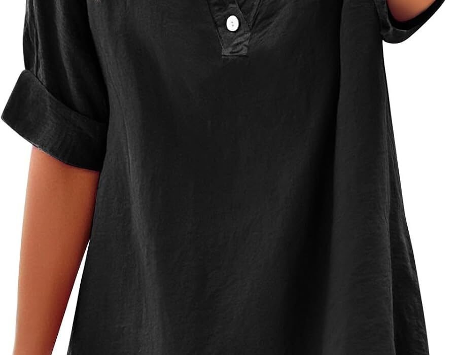 Collection manches courtes col en V | vacances d’été avec un ajustement quotidien préféré: chemise en coton et chanvre + t – shirt respirant