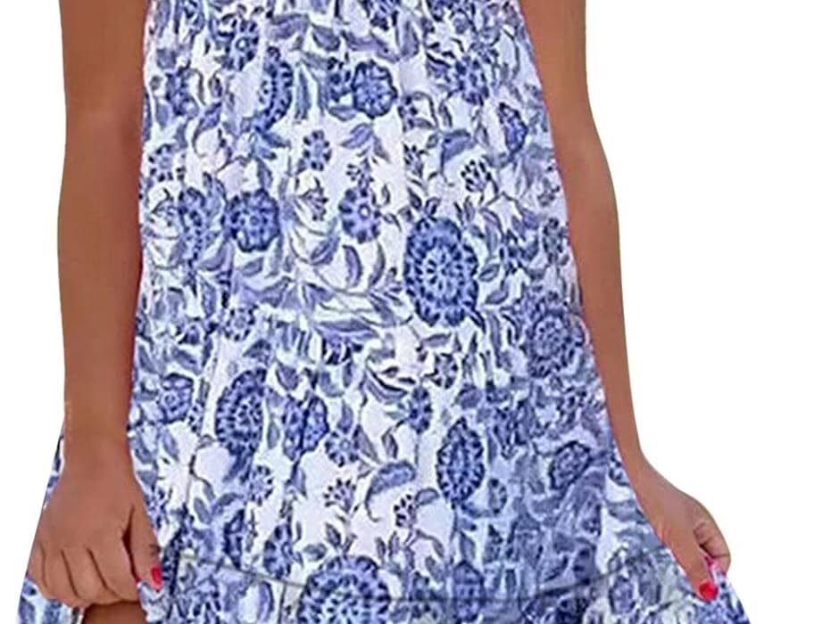 women dress,fashion floral o neck ruffle hem spaghetti strap short dress beach dress casual dress for women