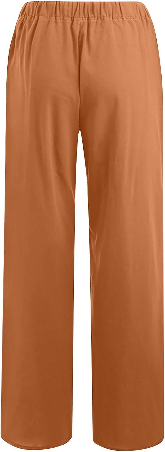 Women’s Fluid Summer Fluid Cotton Linen High Waist Elastic Casual Pants Fashion Hemp Comfortable Jogging Beach Retro Pants Lightweight Breathable Pants with Pockets