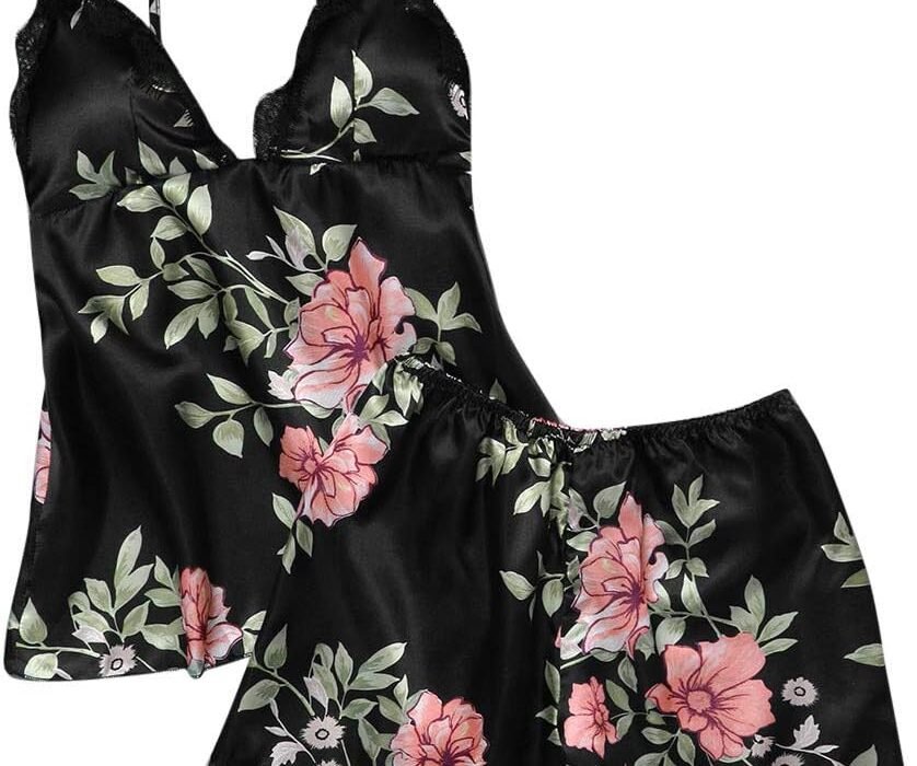 Package includes: 1 set women’s sexy satin summer 2019 women’s clothing inexpensive fashionable large size sexy satin nightdress women’s lingerie set women’s lace t-shirt, sleeveless top and pyjama shorts.